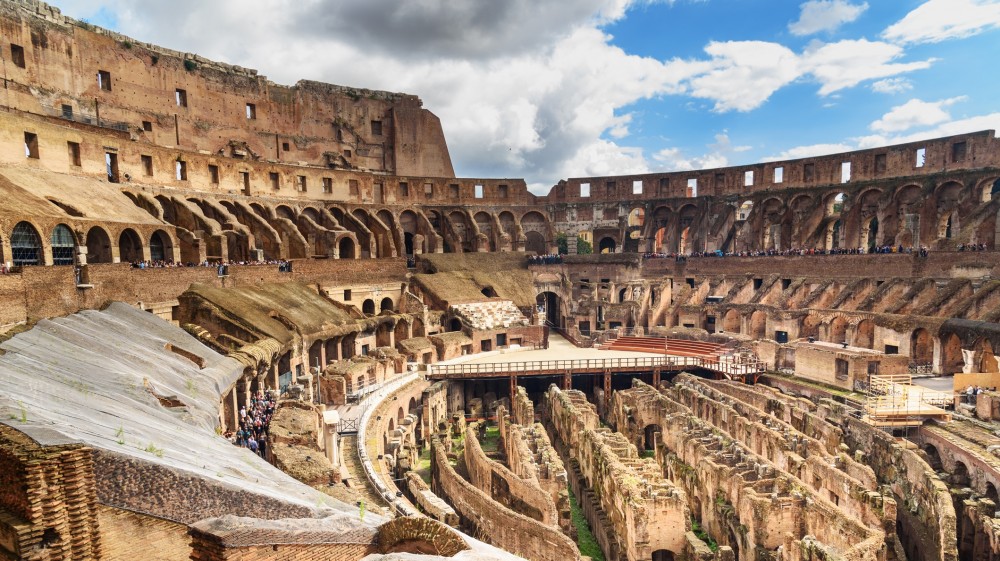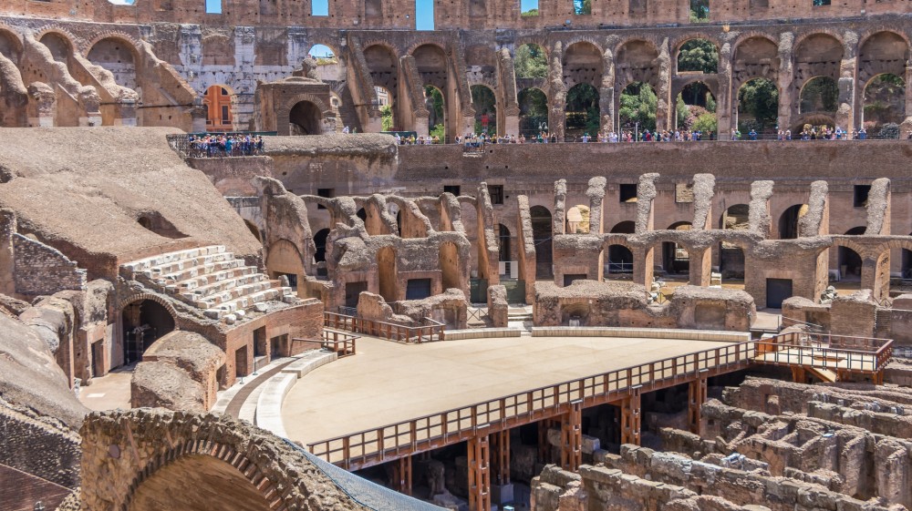 - Arena floor: The stage for gladiator battles, the arena floor in the Colosseum has been witness to epic fights between beasts and men. Made of wood and covered in a layer of sand, the floor was destroyed in the 6th century after the end of the gladiator battles. Today a section of it has been reconstructed to give visitors a taste of its earlier grandeur. The upper seating areas underline just how vast the monument really is!